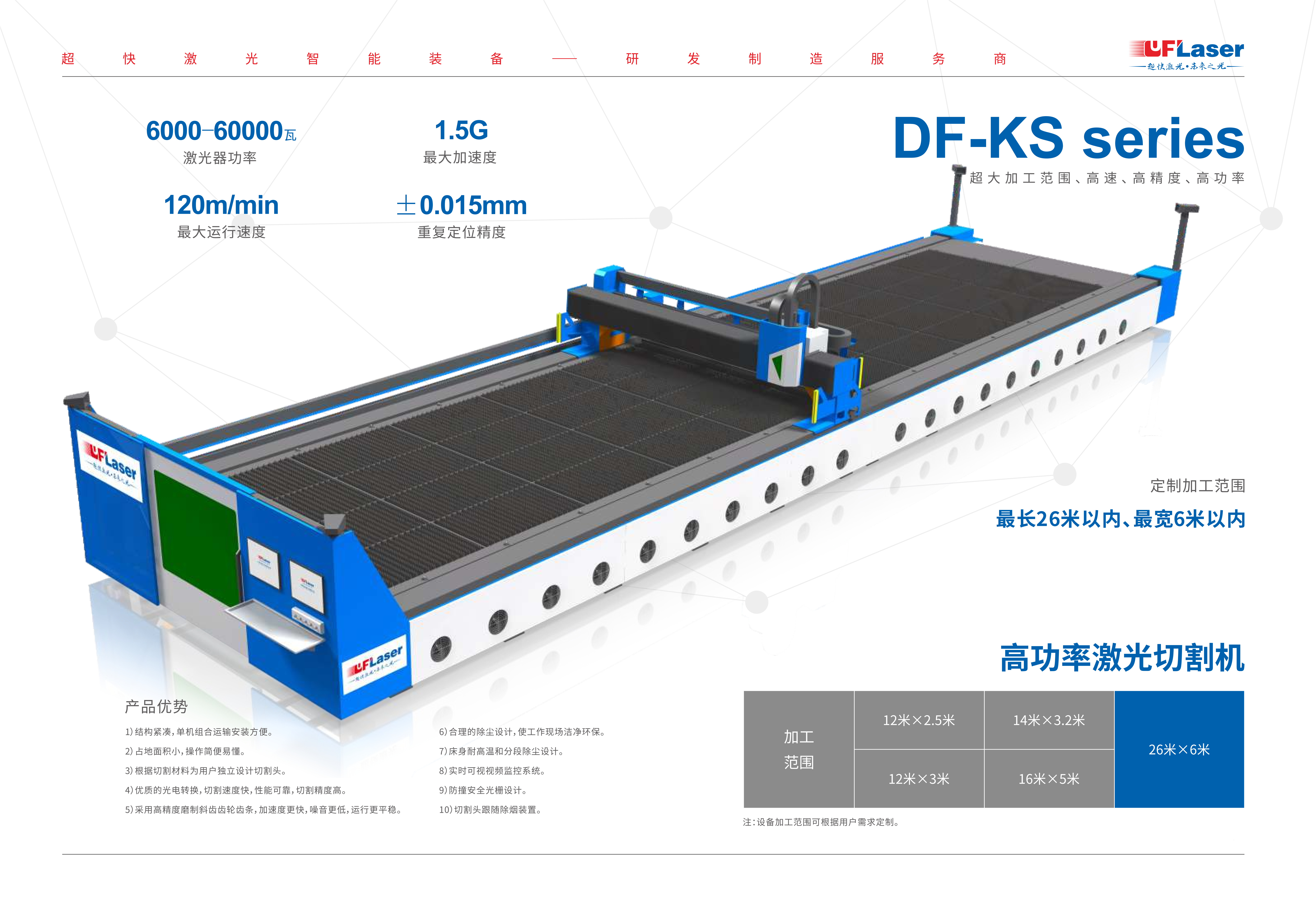 4.超大幅面設計,13米*3米使加工范圍更大。